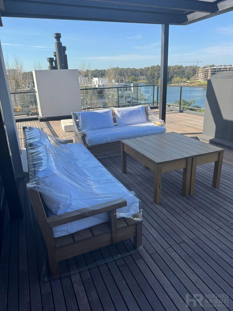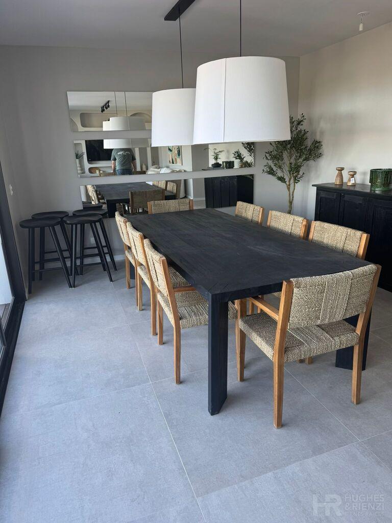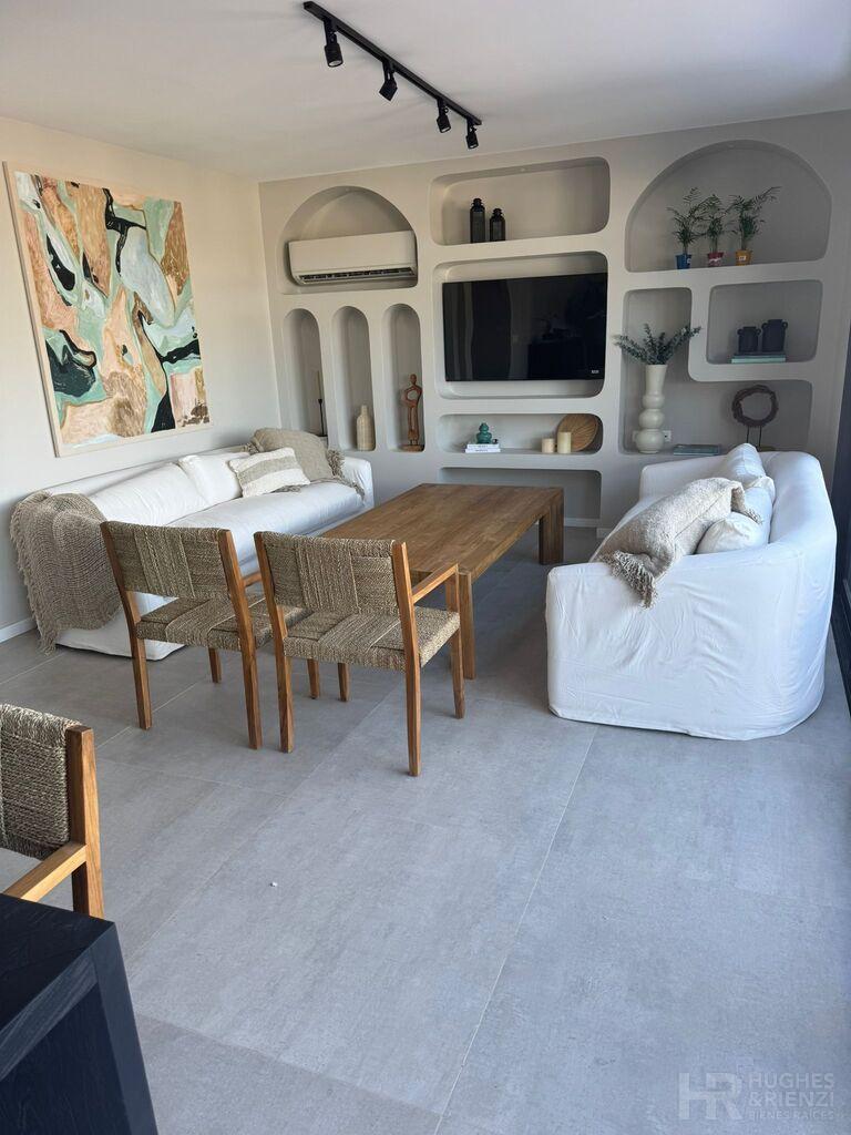 AA en living-comedor, cocina equipada con anafe, horno y campana.
