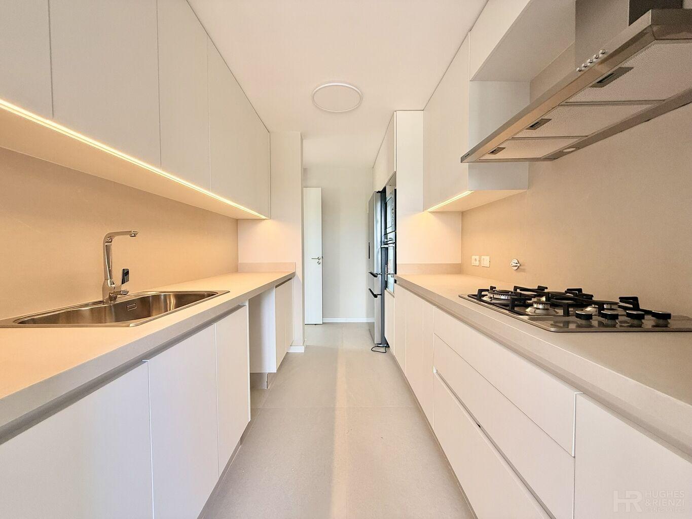 Anafe, horno, campana, heladera y microondas empotrado.