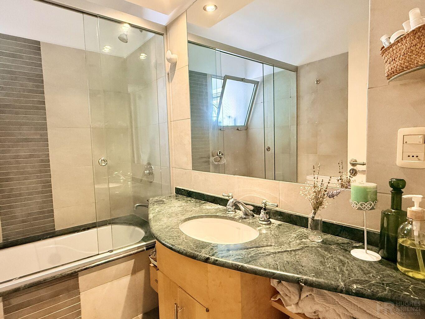 2 dormitorios de buen tamaño, principal en suite con gran placard y salida a terraza con vista al verde.